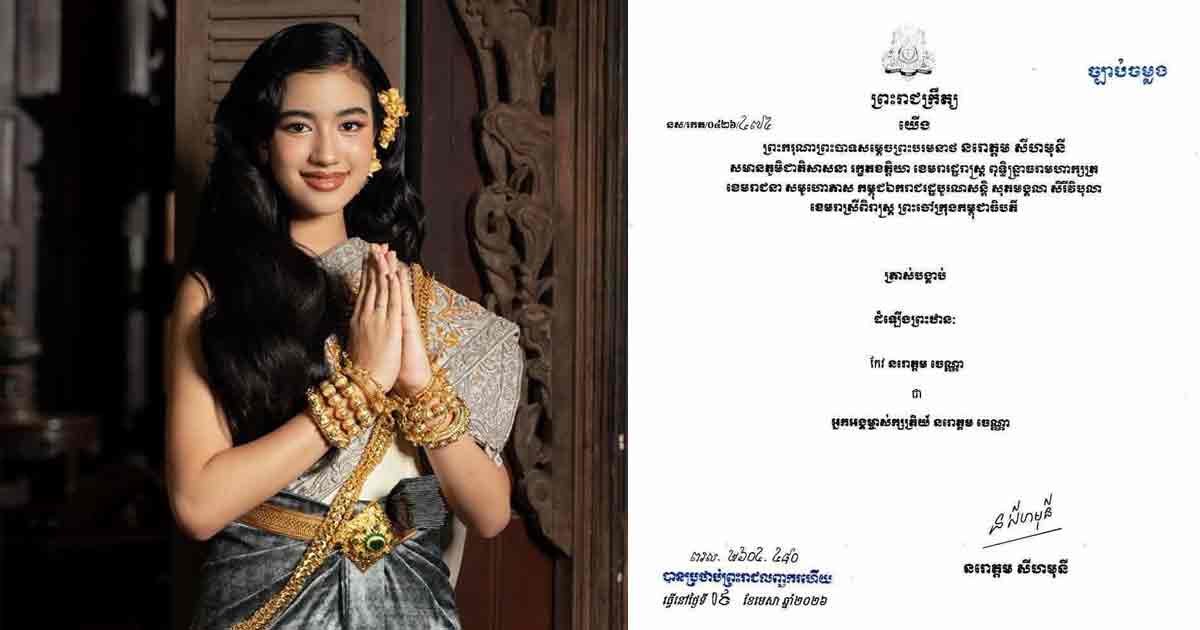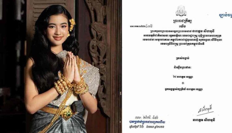The promotion honours her contributions to the arts. She is the daughter of Princess Norodom Bophary, a granddaughter of the late King Father Norodom Sihanouk, and a niece of the reigning monarch.