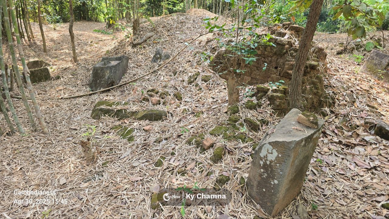 Like many temples of its era, Totoeng Thngai was built primarily of brick, with sandstone reserved for door frames, colonnettes, lintels, and pedestals that once supported sacred statues. Time has not been gentle. Much of the brickwork has collapsed into scattered mounds, slowly swallowed by bamboo and leaf litter.