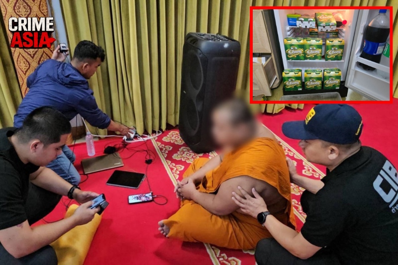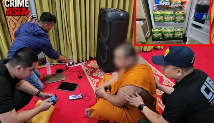 During the search of the premises, officers found gambling equipment, condoms, lubricants, and a large quantity of alcoholic beverages stored in a refrigerator. They also seized three mobile phones and three electronic devices containing more than 100 explicit images and video clips involving novice monks.